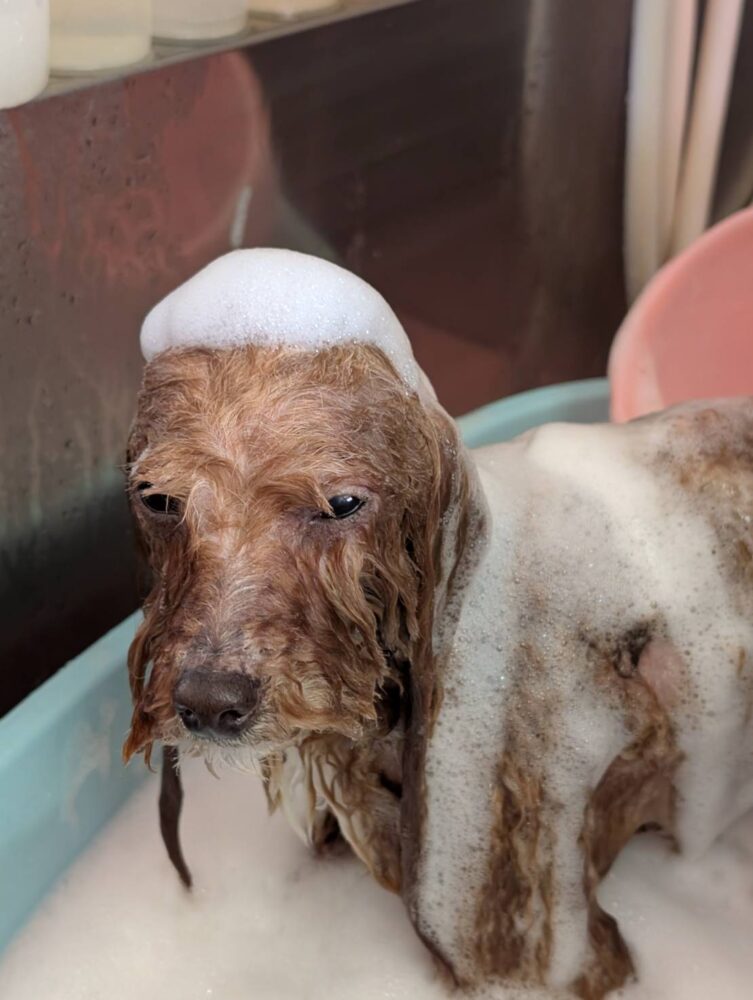 飼い主さまにはワンちゃんの最近の体調、皮膚の様子などを伺い、どんなシャンプーを使うかを決め、施術中に気を付けることはないかを確認いたします。